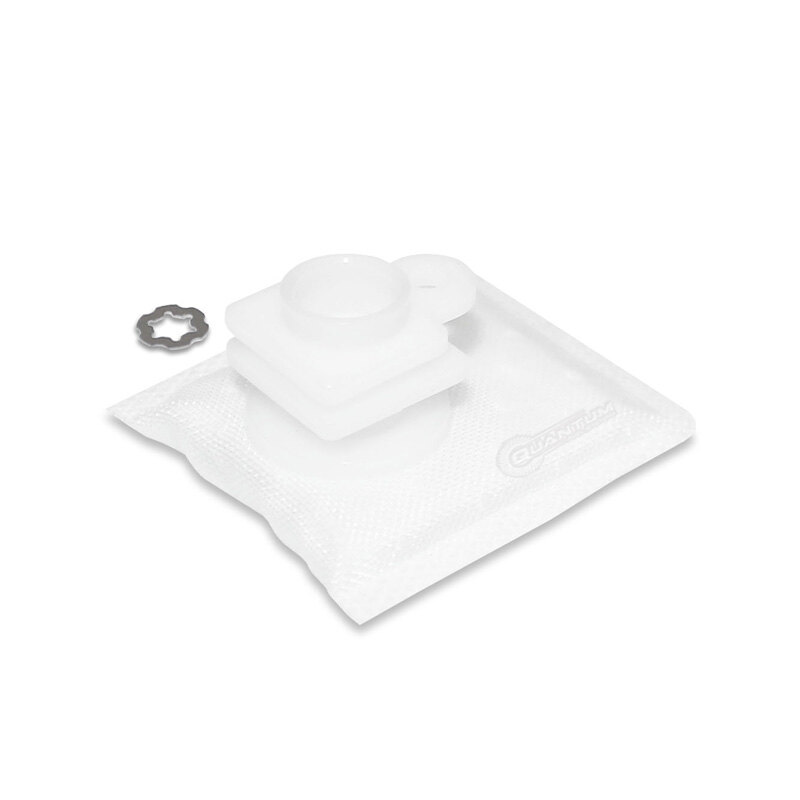 Fuel pump strainers act as a first line of defense against fuel system degredation. Strainers filter out common debris found in gasoline such as dirt, dust and other particulate matter, as well as gasoline varnish. Quantum fuel pump strainers feature multiple layers of strainer media to filter progressively smaller particle sizes. The expanded surface area provides enhanced filtration, extending the life of the fuel pump.