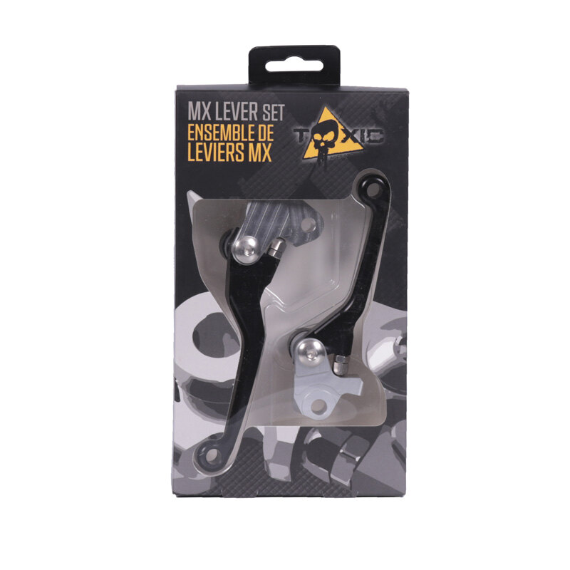 Toxic CNC levers are made out of billet aluminum 6061 T6 with anodized finish for durability and long service life. Hardware is all made of stainless steel for good looks and durability. Adjustable reach for a custom fit. Folding design flexes during impact. With bolt and sleeve that exactly match the pivot diameter of the lever to eliminate almost all up or down play for an OEM bike fit. Sold by pair