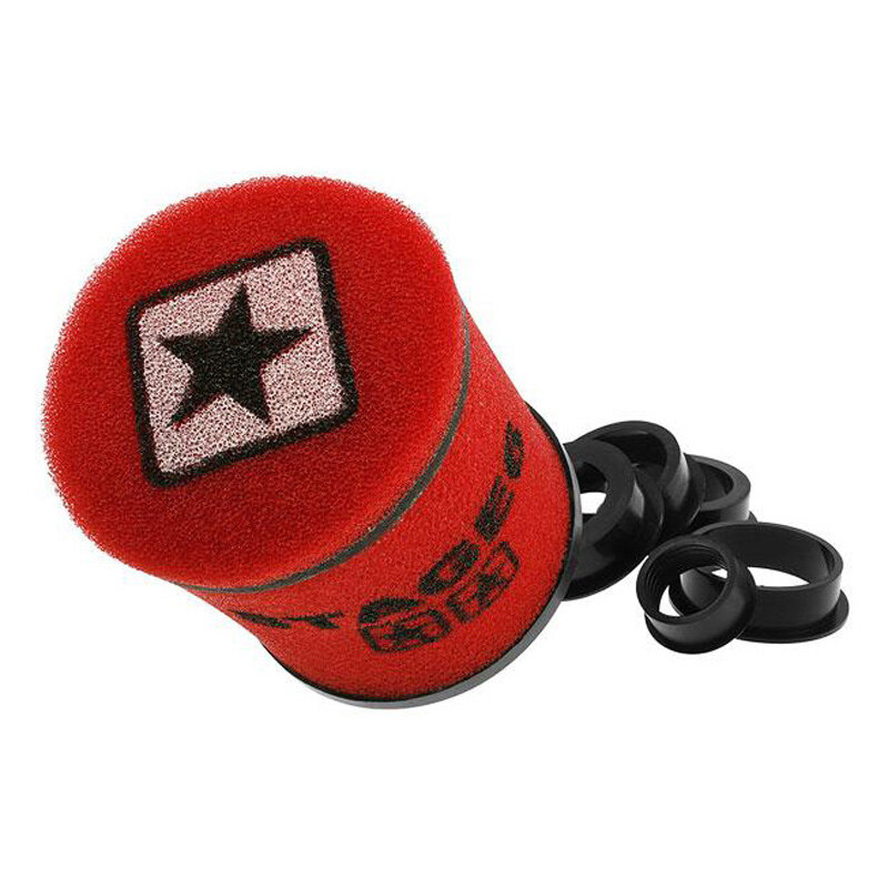 Double layer racing air filters from Stage6 with 2 layers of HQ foam with differing porosities for excellent air flow and optimum filtration. More air and less dirt translates into improved performance - the perfect air filter for tuned / race engines. They come with several adapters so they are basically compatible with all common sized carburetors on the market.