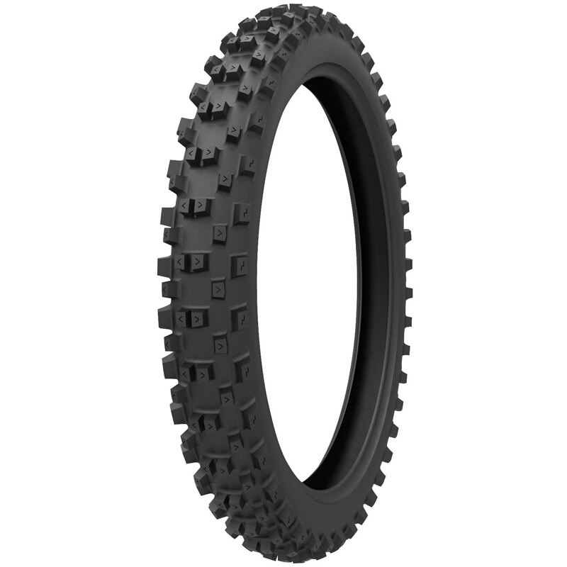 Front and rear tread patterns offer tall knob depths for deep bite. Large radius support at knob base reduces roll over in soft areas with hard base. Wide space between rows self-cleans tread even at slow paces. Standard race compound allows for increased wear durability and also offers quick warm-up on cement start pads. Light 4-ply rated casing material reduces unsprung weight. DOT approved front tire.