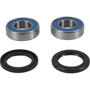 All balls wheel bearings and seal kits contain all of the bearings and seals required to refit a wheel. The All Balls wheel bearing was developed in partnership with KML Bearing and is designed for the difficult operating environment of the powersport industry. The All Balls bearing is a premium quality high-speed bearing featuring low drag, double lip rubber seals which provide superior exclusion of water and dirt and improved grease retention. The rubber coated outside diameter creates an optimum seal at the hub. The street garter spring guarantees constant pressure on the axle shaft.