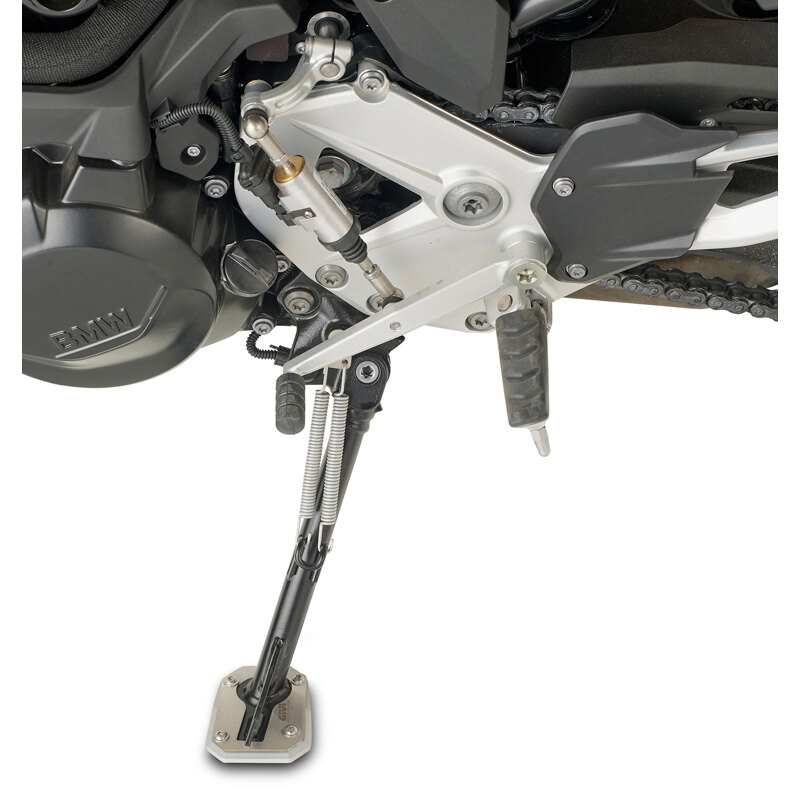 Specific support in aluminium and stainless steel to widen the surface support area of the original side stand