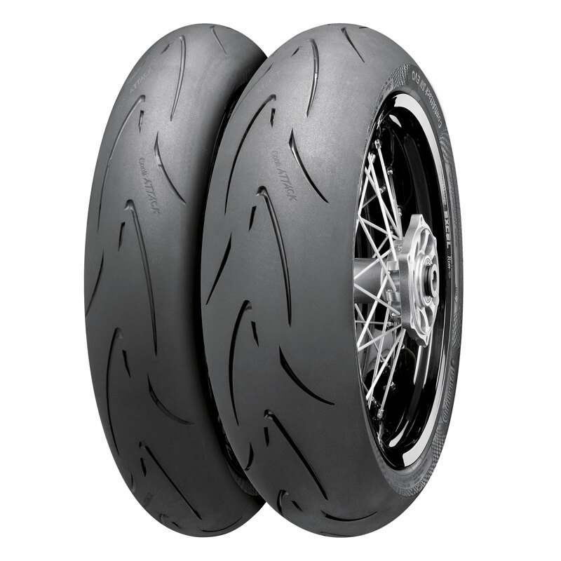 Sporty tire for Supermoto and mid-sized sports motorcycles.