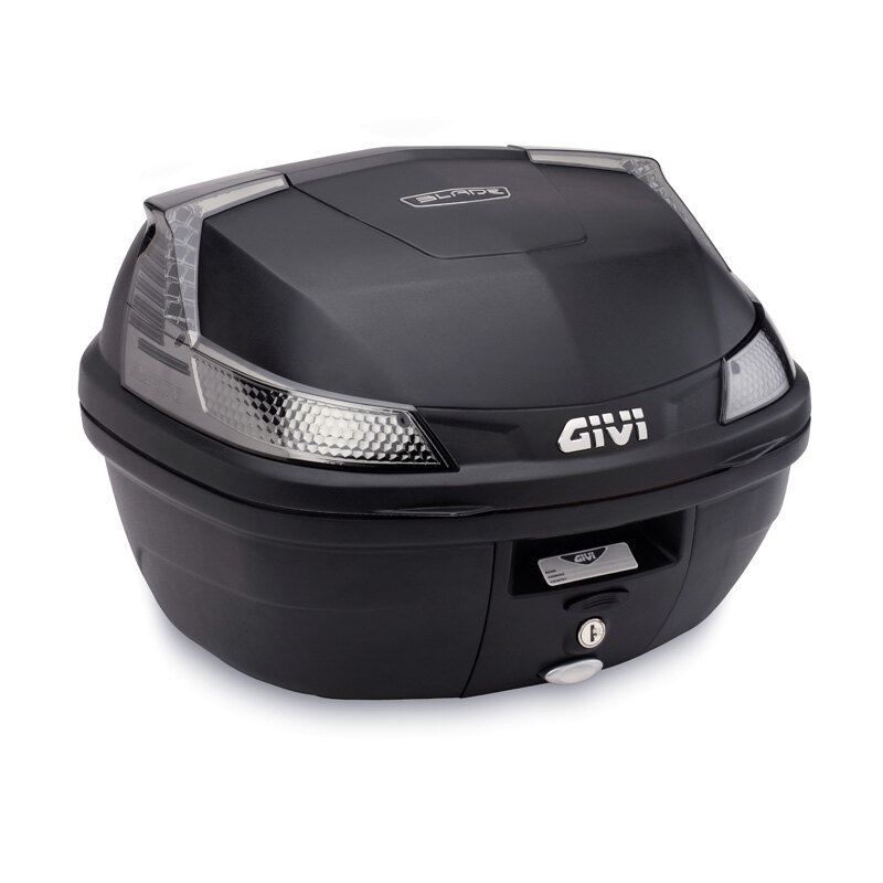 37-LITRE MONOLOCK® TOP CASE (BLACK) WITH RED REFLECTORS, UNIVERSAL MOUNTING PLATE INCLUDED.