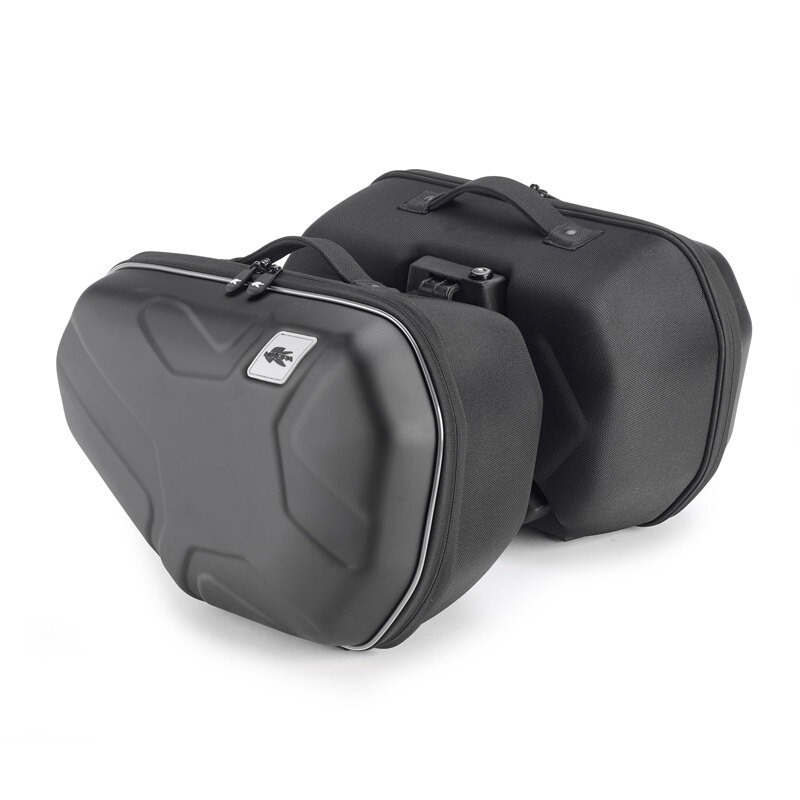 Quick attach/release system to be used with proper saddlebag linkage and Easylock plate. Pair of thermoformed 17-litre capacity saddlebags.