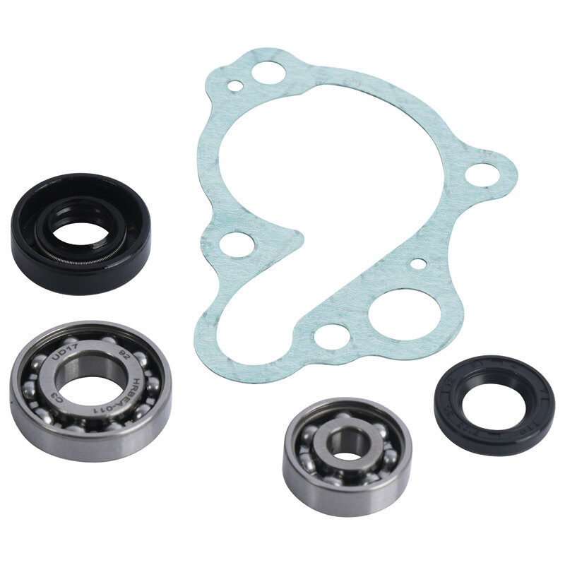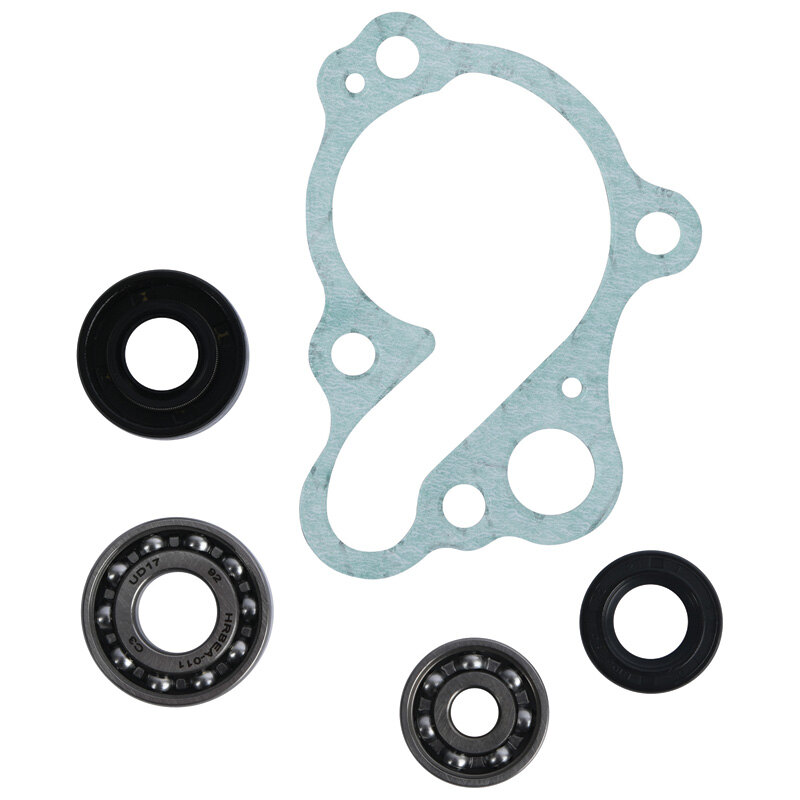 • Hot Rods water pump repair kit includes water pump cover gasket or O-ring, water pump shaft bearing(s), and seal(s) to repair a leaking water pump seal and/or a failed bearing.