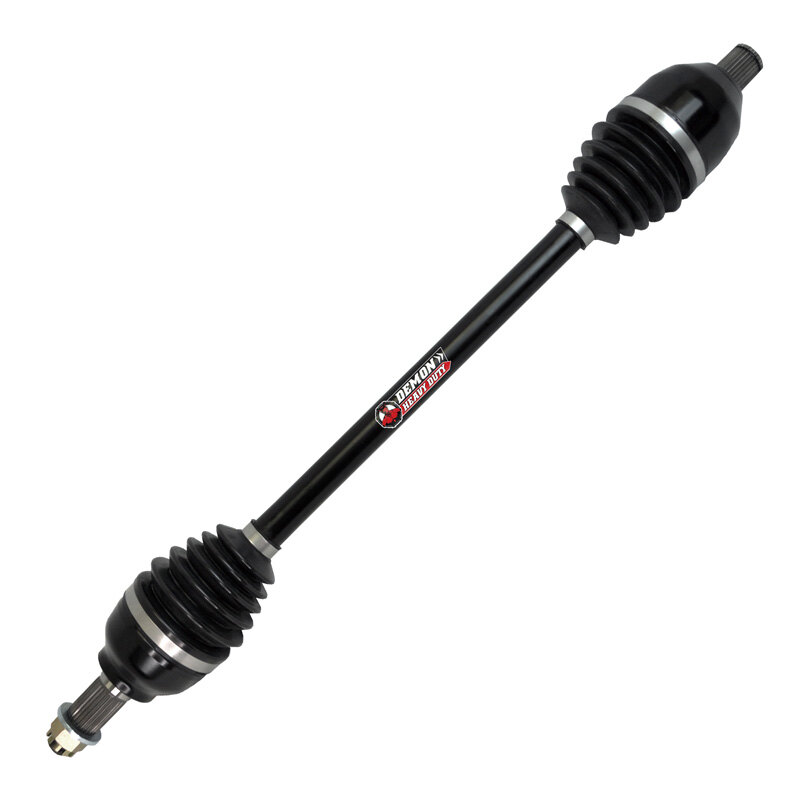15%-20% increase in diameter compared to regular axle Inner cage made up of 4340 chromoly steel Dual heat treated high strength chromoly steel shaft Thermoplastic polyester elastomer (TPEE) Boot 10%-15% increase in CV joint size compared to regular joints Wider articulation angles Dual plunge design prevents axle from binding Packed with high load molybdenum grease Precision CNC machined Can Fit 1.5"- 5" Bracket lift of particular brands/ All Portal Gear Lifts / 1.5"- 5" A-arms of particular brands 1-year ltd warranty The Demon heavy duty axles are equipped with TPEE (Thermoplastic polyester elastomer) boots which are stronger, stiffer, has more fatigue resistant, more puncture resistant, and higher temperature resistant than a standard OEM boot. Dual heat treated high strength Chromoly steel shaft, with upgraded inner cage material to 4340 Chromoly Steel. Design and test all our Heavy Duty Axle to have 1.5 inches of plunge travel and 40° articulation over terrain on the inboard joint. While the outboard joint can travel 0.5inches and swing from 45°-47° depending on the model. Axles use molybdenum grease to provide low friction and smooth motion. Trust in Demon Heavy Duty Axles to keep you riding! These axles also utilize a unique double plunge design which allows it to achieve higher articulation angles approximately. Please review all product information to ensure that this product is compatible with your unit. This item comes with 1 year warranty.