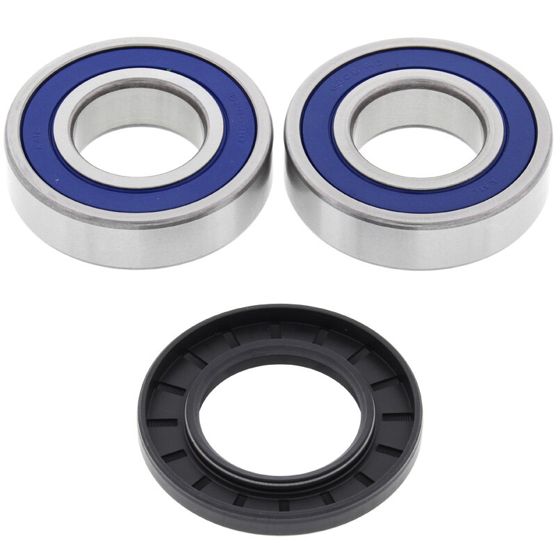 All balls wheel bearings and seal kits contain all of the bearings and seals required to refit a wheel. The All Balls wheel bearing was developed in partnership with KML Bearing and is designed for the difficult operating environment of the powersport industry. The All Balls bearing is a premium quality high-speed bearing featuring low drag, double lip rubber seals which provide superior exclusion of water and dirt and improved grease retention. The rubber coated outside diameter creates an optimum seal at the hub. The street garter spring guarantees constant pressure on the axle shaft.