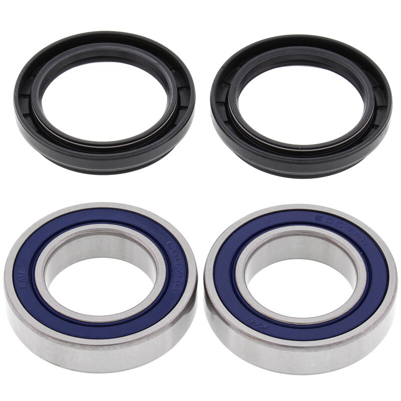 All balls wheel bearings and seal kits contain all of the bearings and seals required to refit a wheel. The All Balls wheel bearing was developed in partnership with KML Bearing and is designed for the difficult operating environment of the powersport industry. The All Balls bearing is a premium quality high-speed bearing featuring low drag, double lip rubber seals which provide superior exclusion of water and dirt and improved grease retention. The rubber coated outside diameter creates an optimum seal at the hub. The street garter spring guarantees constant pressure on the axle shaft.