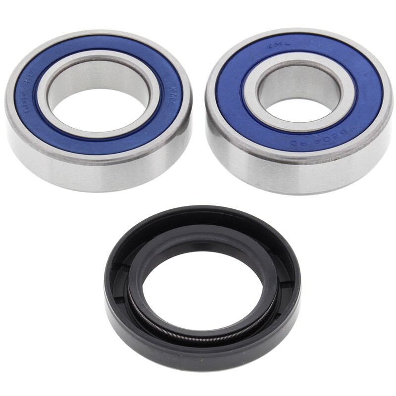 All balls wheel bearings and seal kits contain all of the bearings and seals required to refit a wheel. The All Balls wheel bearing was developed in partnership with KML Bearing and is designed for the difficult operating environment of the powersport industry. The All Balls bearing is a premium quality high-speed bearing featuring low drag, double lip rubber seals which provide superior exclusion of water and dirt and improved grease retention. The rubber coated outside diameter creates an optimum seal at the hub. The street garter spring guarantees constant pressure on the axle shaft.