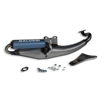 EXHAUST in special sheet steel (1.5 mm thickness) manufactured through the press working process. The exhaust features silencing baffles, aluminum alloy mounting brackets with vibration isolators. Clear-coat finish.