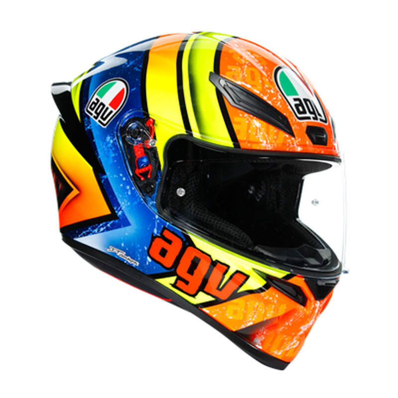 K1 is the AGV sport helmet for everyday riding challenges. Born from the AGV racing technology, ready for every road experience. The aerodynamic shape, racing-developed front air vents and wind-tunnel-tested spoiler maximize performances and give stability at higher speed. The anti-scratch visor with Pinlock® anti-fog allows a wider vertical and lateral field of vision. Comfort is not compromised with Dry-Comfort soft and removable interiors. Competition is a matter of facts.