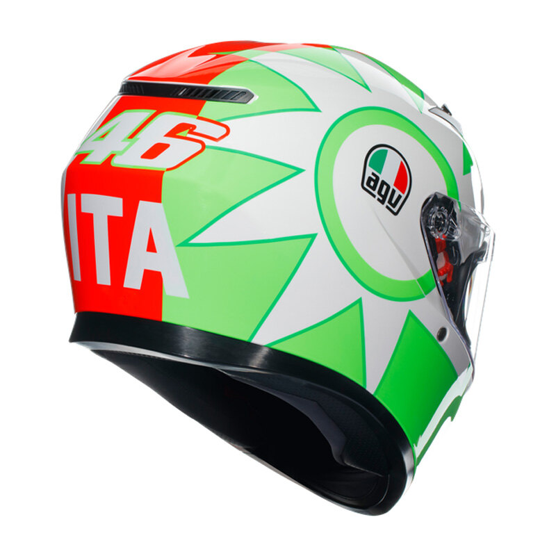 It offers safety for all, at the highest levels – the shell made of high-resistance thermoplastic material, the multi-density EPS and the details such as the collarbone-protection profile and the protective visor allow K3 to obtain the strict ECE22.06 homologation. Due to the AGV Extreme Safety construction protocol, K3 meets the requirements of the most recent international standards and then some.