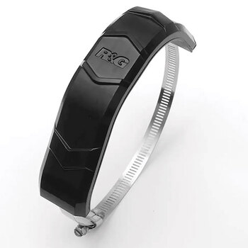 Should you drop or crash your bike, your end can is likely to be scraped - how ever when an R&G exhaust protector is correctly placed on the exhaust the damage to your exhaust is likely to be greatly reduced.ÃÂ A large shock absorbing rubber under the protector casing and large enveloped jubilee clip ensure the exhaust protector stays exactly where it should and doesn't damage the exhaust during installation and throughout its life. Suitable for large exhausts found on such bikes as the Aprilia Caponord 1200 '13- and the BMW R120RT '14-. Made in the U.K.