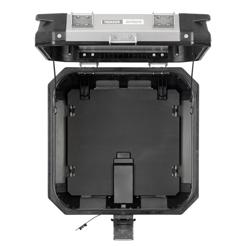 Able to comfortably hold 1 modular or full-face helmet, this top case (also available in a 58-litre version) offers the possibility to store objects or other bags on top of the lid, thanks to the use of its 4 upper strap loops. The technical features, which also include the Security Lock mechanism and a useful mat for the base that absorbs impact and vibrations, now include optional accessories that allow you to personalize the top case to suit your own taste: from the elastic net that secures luggage to the underside and the polyurethane backrest, to the internal courtesy light, the waterproof inner bag and many others.