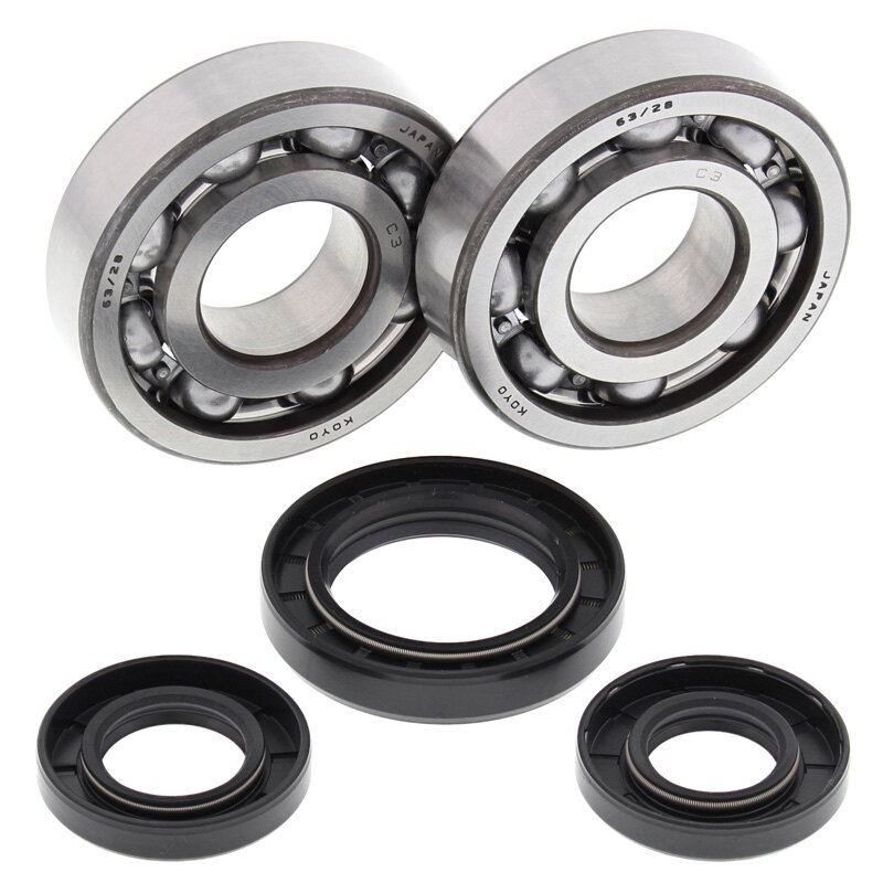 All Balls crankshaft bearing and seal kits feature Koyo & Nachi precision Japanese crank bearings. The crankshaft seals feature a carbon/fluorocarbon pad on the seal lip and stainless steel garter springs. This reduces friction and crank pin wear.