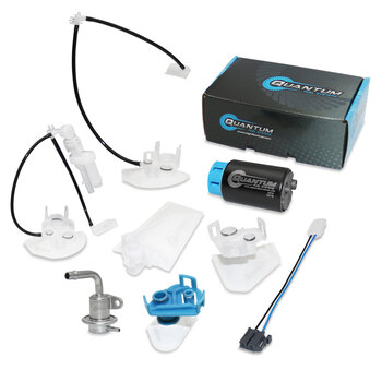 Quantum replacement fuel pumps and assemblies are designed to meet or exceed OEM specifications, and feature upgrades that improve on the OEM design. Upgraded polymers, brushes, and commutators ensure long life and durability in multiple fuel blends.