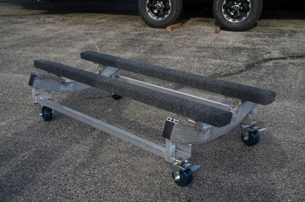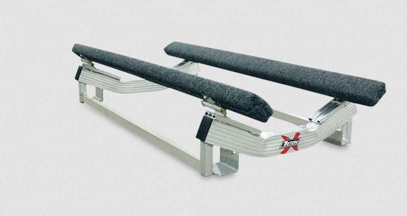 Dual bowed cradle design for better clearance of the watercraft’s hull. |